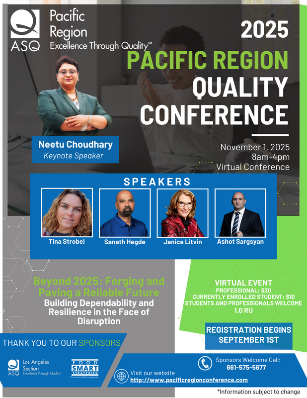 Introducing the 2025 Pacific Region Quality Conference (PRQC). Our mission is to provide a forum for like-minded professionals to share their ideas and learn from workshops and presentations, resulting in enhancements to personal development and business acumen, building on the foundation of quality.